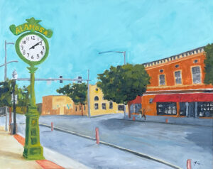The Velhagen Clock is a historic two-faced clock located in downtown Alamosa on Main Street, just west of State Avenue. The clock was originally installed in 1912 by Velhagen Jewelers in front of their store on State Ave, just South of Main St. The clock is 18-foot-tall, cast-iron and was manufactured by the Seth Thomas Clock Company. It was shipped from Connecticut by train. It was removed in the 1960s, later restored and installed in its current location in 2024.